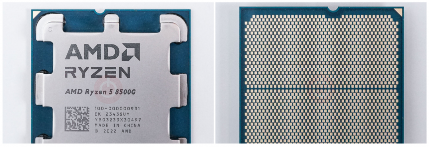 Процесор Ryzen 5 8500G має 16 МБ кешу L3 і працює на базовій частоті 3,5 ГГц із можливістю підвищення до 5 ГГц залежно від навантаження. Його виготовлено за передовим 4 нм техпроцесом, він містить 20,9 млн транзисторів. Кристал процесора виготовляють не на заводах AMD, а на виробничих потужностях TSMC.