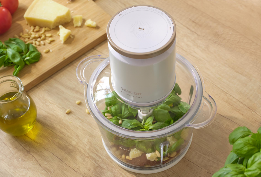 Цю модель оснащено потужним двигуном 800 Вт, який дає змогу справлятися з подрібненням овочів, фруктів, горіхів та інших інгредієнтів.