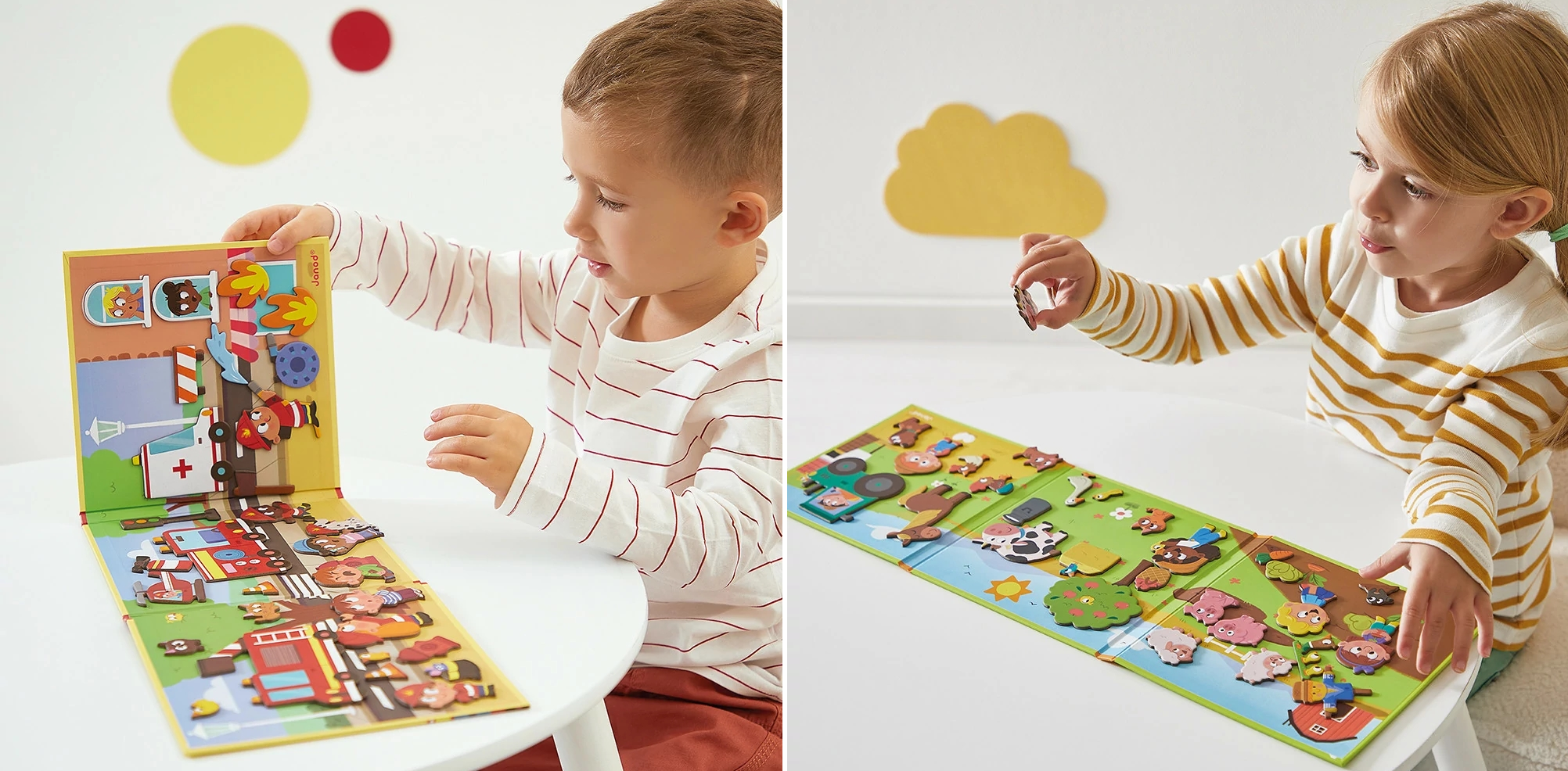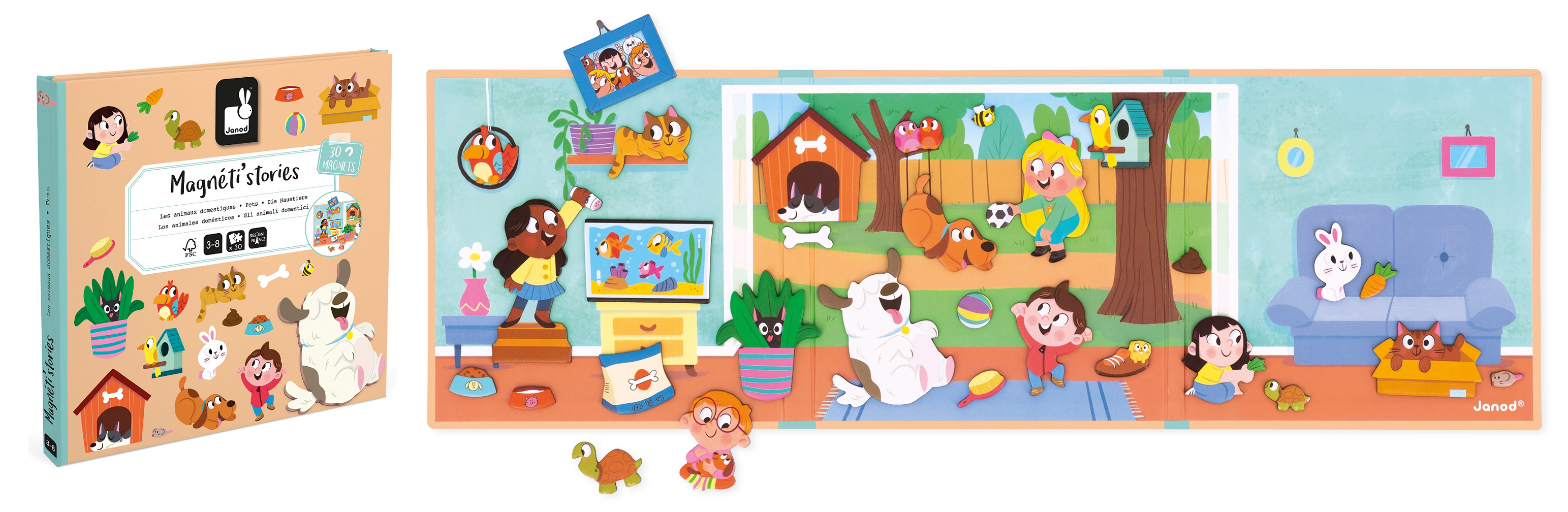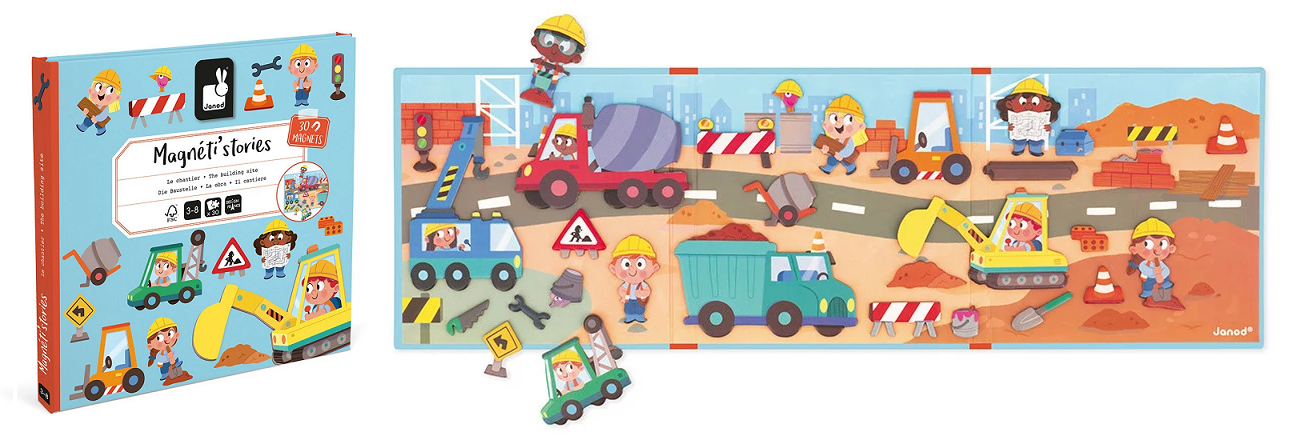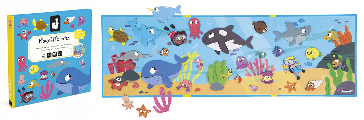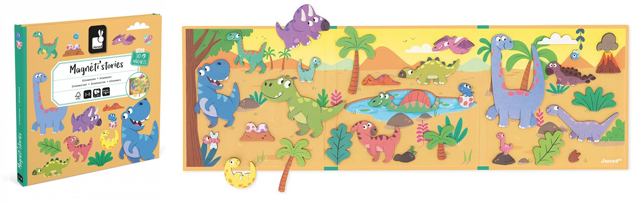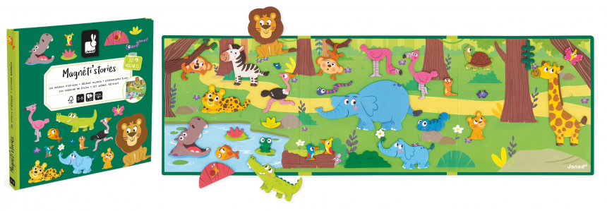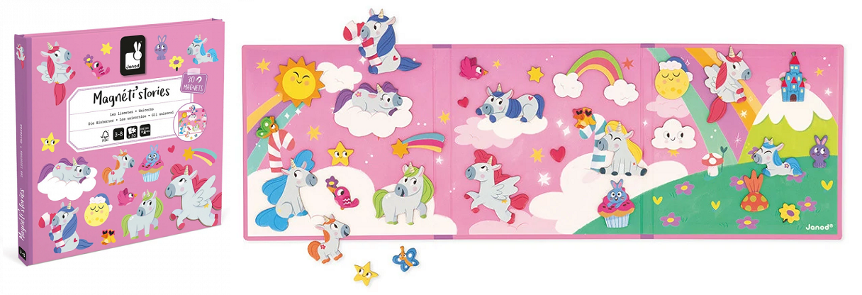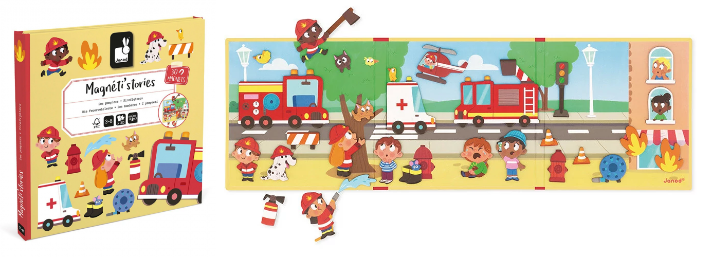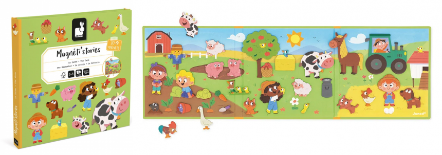 «Магнітні історії» Janod – це перші кроки до власного сторителінга, розвитку уяви й мовлення, а також можливість створювати цілі світи на магнітній дошці, які щоразу матимуть новий вигляд. Колекцію виготовлено з картону, сертифікованого FSC, та екологічно контрольованих матеріалів.