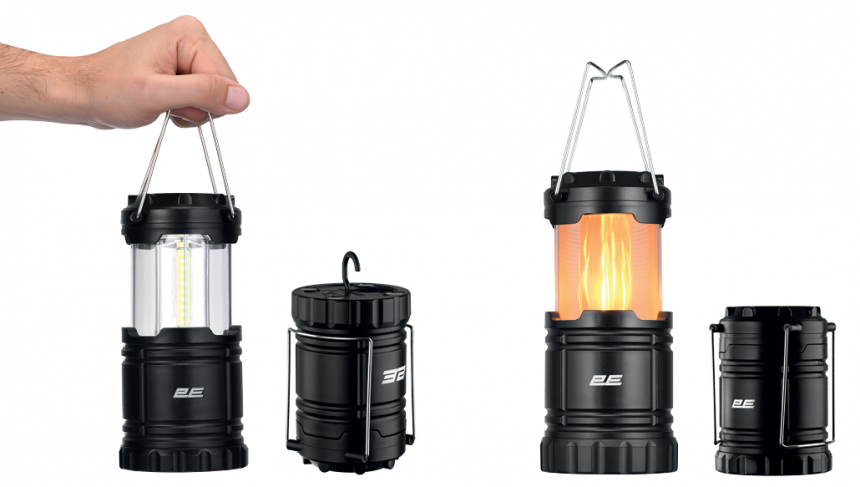 Також доступні інші кемпінгові варіанти, як-от 2E-PLBL3AA та 2E-PLBL3AAF, які забезпечують розсіяне світло для подвір’я, підвалів, гаражів або технічних приміщень. Їх можна використовувати як допоміжне освітлення в разі відсутності централізованого живлення. Конструкція ліхтарів висувна та складана, що створює зручність під час транспортування та зберігання. Працюють пристрої від трьох батарейок АА (час роботи становить від 2 до 5 год).