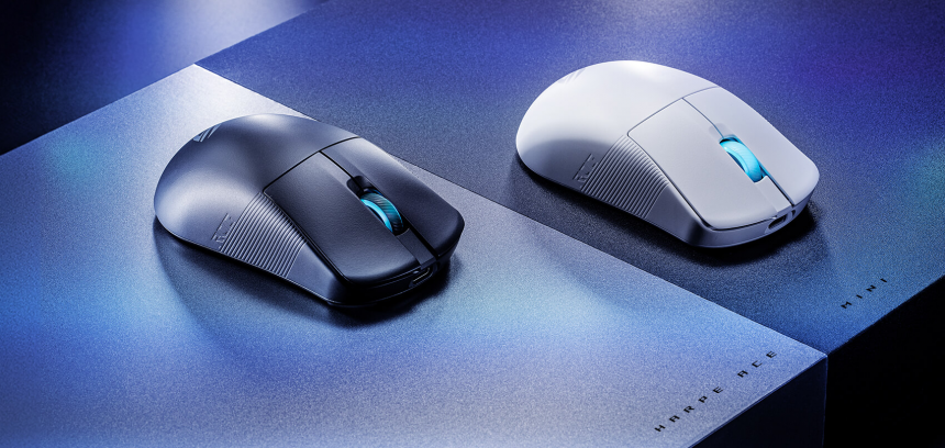 ROG Harpe Ace Mini – надлегка (49 г) ігрова миша з напівсиметричним профілем, яку оснащено топовим оптичним сенсором ROG AimPoint Pro та оптичними перемикачами ROG із ресурсом у 100 млн натискань. Вона має функції фірмових технологій ROG SpeedNova і Omni Reciever, а також підтримує технологію ROG Polling Rate Booster.