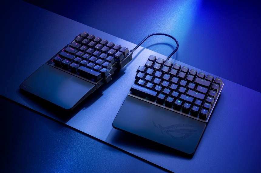 ROG Falcata – це ігрова клавіатура з компактним формфактором 75 % та унікальною конструкцією з можливістю розділення на дві частини. Модель оснащено магнітними перемикачами ROG HFX V2 із підтриманням гарячої заміни та сенсором ROG Hall Sensor для миттєвого реагування на кожне натискання клавіш.