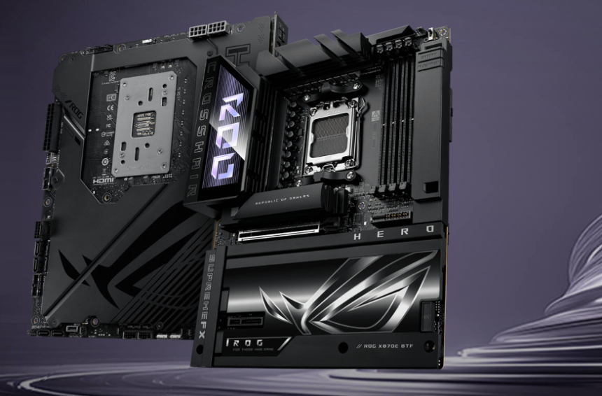 ROG Crosshair X870E Hero BTF має приховані (перенесені на задню частину) розніми, що забезпечує надзвичайно охайний вигляд ПК. Вона пропонує надійне живлення за технологією ASUS з використанням ШІ, PCIe 5.0 і слоти DDR5 із технологією NitroPath DRAM для підвищеної продуктивності пам’яті.