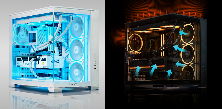Корпус ASUS A32 PLUS із формфактором ATX забезпечує комфортне розміщення всіх компонентів – підтримуються СРО завдовжки до 360 мм і відеокарти завдовжки до 420 мм. Двокамерна конструкція та чотири попередньо встановлені вентилятори гарантують якісне охолодження компонентів, а панорамна конструкція – красу збірки.