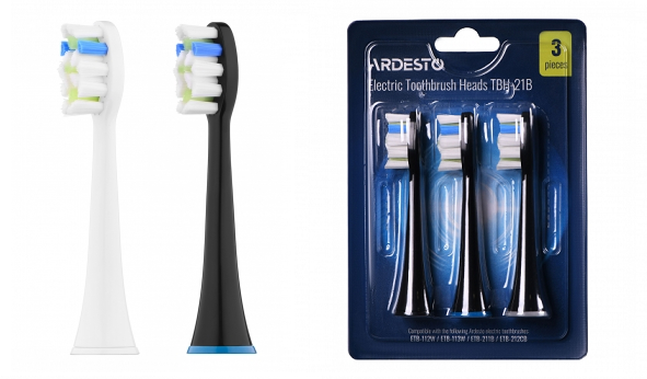 До моделей ETB-112W та ETB-211B доступні змінні насадки двох кольорів – білого та чорного (TBH-21B і TBH-21W). Це зручно, якщо однією щіткою користуються удвох – достатньо лише мати різнокольорові насадки. Практично й економно!