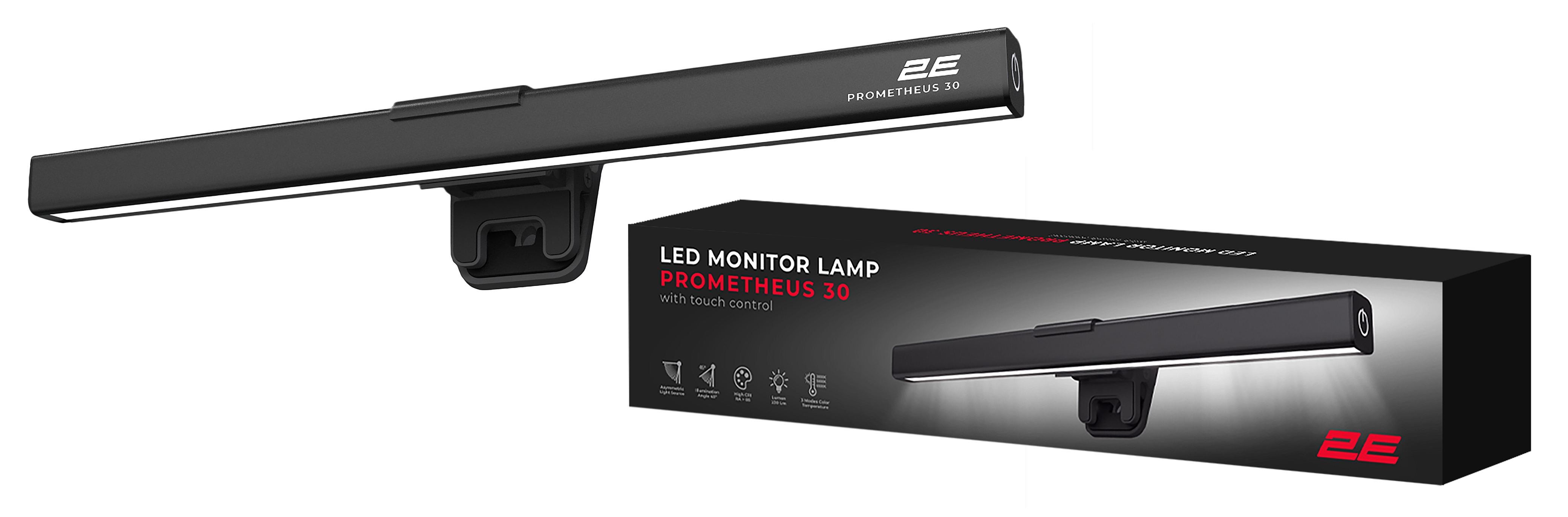 Лампи на монітор 2E PROMETHEUS – стримане, технологічне й функціональне рішення для тих, хто цінує комфорт і зосередженість у роботі.