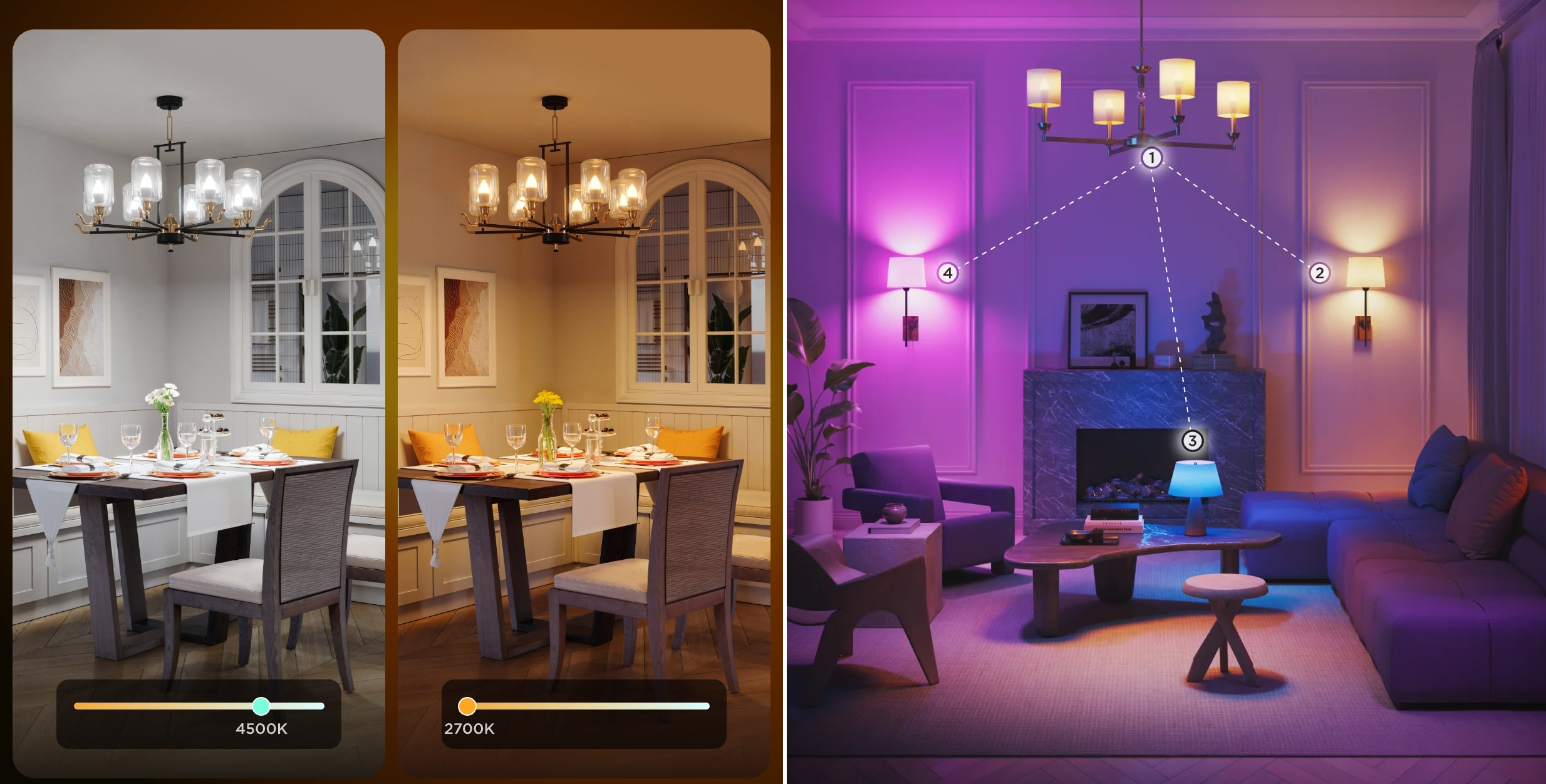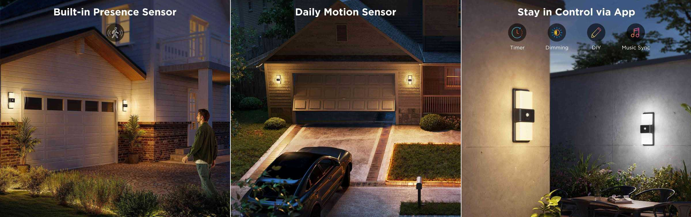 Пристрій підтримує RGBICWW-технологію, яскравість до 1500 лм та температуру 2700-6500K. Корпус із захистом IP65 дає можливість використовувати світильник на терасах або біля входу до будинку. Передбачено понад 45 сюжетних режимів, синхронізацію з музикою та підтримання датчика руху (опціонально). Модель інтегрується з екосистемами, що забезпечує плавне підключення в розумному домі.