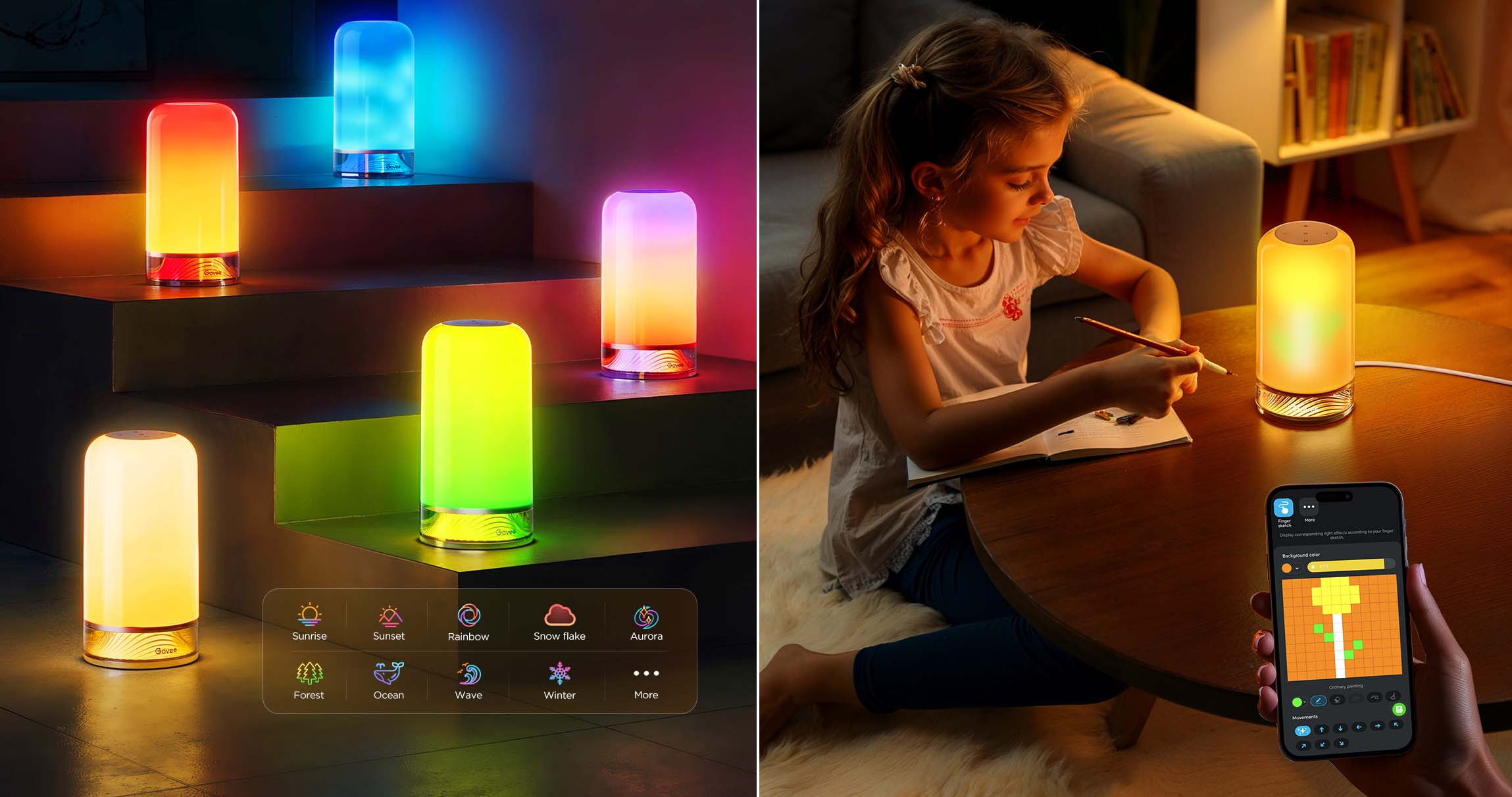 Для внутрішнього використання доступний настільний розумний світильник Govee H6022. Модель має RGBICWW-підсвічування, 16 млн кольорів і понад 60 сцен динамічного освітлення. Регулюється колірна температура 2700–6500K та яскравість від 1 до 100 %. Керування доступне через сенсорну панель, застосунок або голосового помічника. Режим «Зроби сам» дає змогу створювати власні колірні схеми. Світильник знадобиться для приліжкових тумб, робочих столів або декоративних зон.