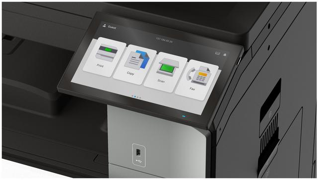 Великий сенсорний екран 10,1″ реагує швидко, тоді як меню має логічну структуру без зайвих елементів. Жодних абстрактних іконок – лише звичні дії: сканувати, надіслати, друкувати, вибрати джерело. Вбудовані відеопідказки допомагають здійснювати базові операції з технічного обслуговування (заміна тонера, бункера відходів тощо) – усе це без сервісних викликів і спеціальних інструментів.