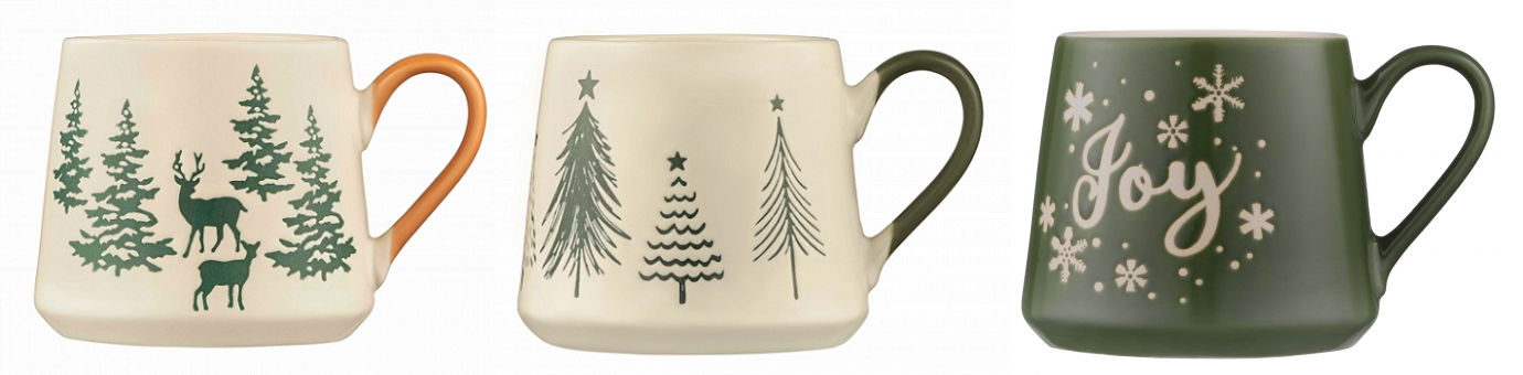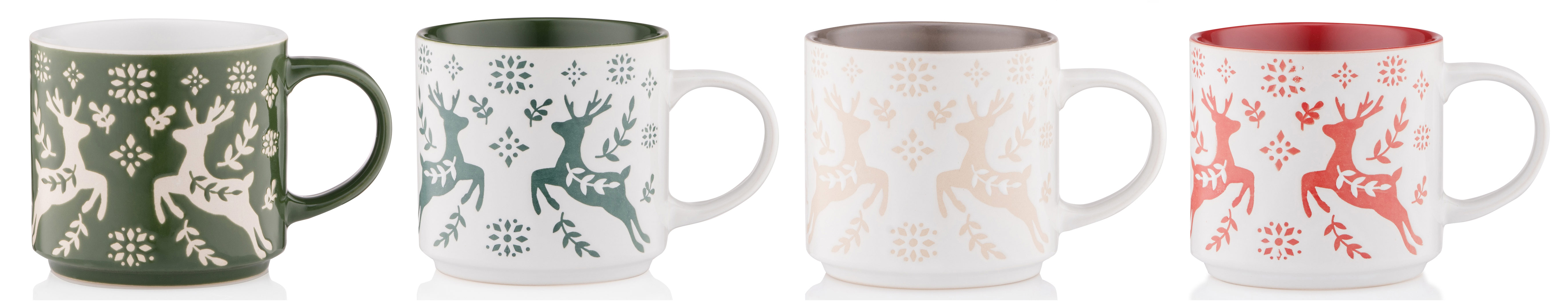 • Керамічна чашка New Year’s з узорами оленів підтримує класичну різдвяну стилістику в кількох кольорових рішеннях.
