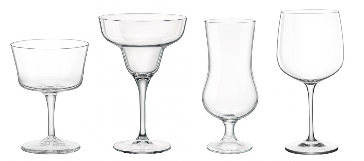 • Bormioli Rocco Bartender Hurricane – комплект, який розроблено для тропічних коктейлів, як-от «Ураган» або «Піна Колада». Келихи вирізняються заокругленою формою чаші, схожою на старовинну лампу, та мають коротку масивну ніжку для стійкості.