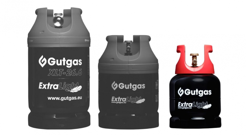 Серія Gutgas ExtraLight поєднує традиційну надійність металевого корпуса з оптимізованою вагою та сучасними матеріалами. Основу становить шведська сталь особливого сплаву, здатна витримувати тиск близько 100 Атм, що в чотири рази перевищує стандартний показник для звичайних металевих балонів (25 Атм). Завдяки здатності до деформації метал ефективно поглинає енергію ударів та забезпечує стійкість під час механічних навантажень.