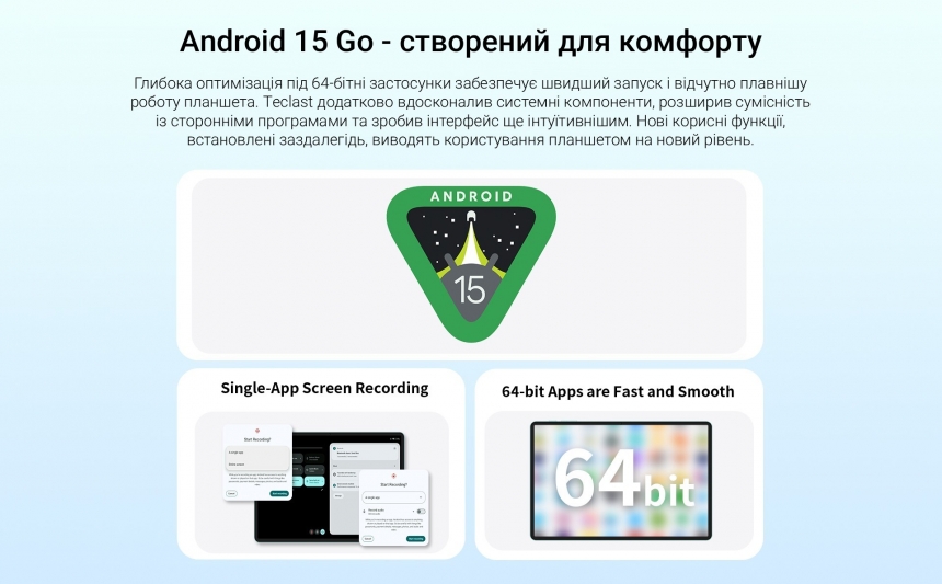 Використання Android 15 Go Edition – розумний хід. Цю версію ОС полегшено та оптимізовано спеціально для пристроїв з таким обсягом пам’яті. Вона працює швидше, займає менше місця і має вбудовані функції батьківського контролю (Family Link), режим читання та захист очей.