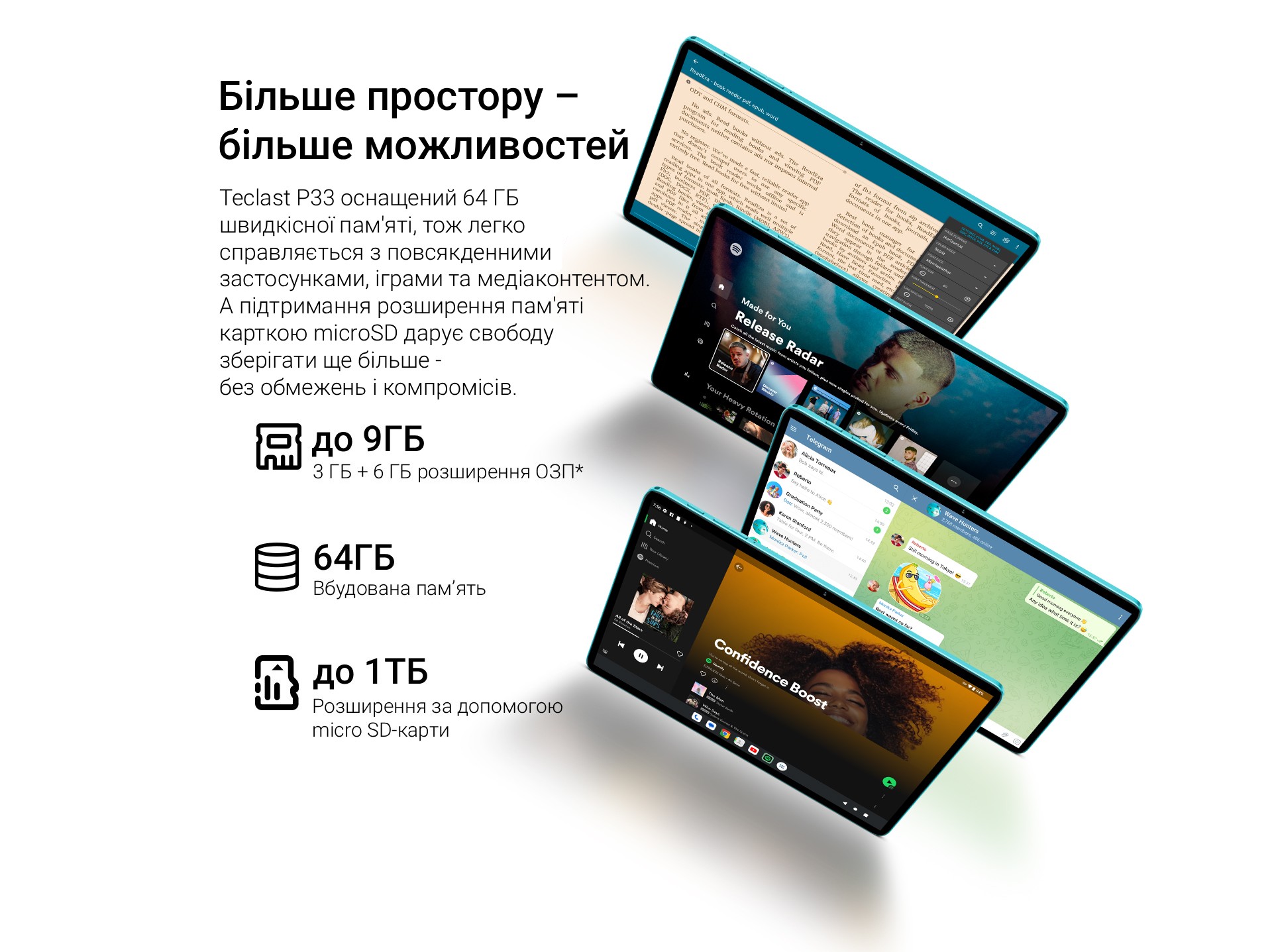 Teclast P33 KIT — доступний планшет із 10.1" IPS-екраном, який чудово підходить для навчання, мультимедіа та повсякденних завдань. Працює на Android 15 Go та оснащений п’ятиядерним процесором Allwinner A333, що забезпечує стабільну роботу інтерфейсу та додатків. Комбінація 3 ГБ оперативної пам’яті та 64 ГБ сховища з можливістю розширення до 1 ТБ робить пристрій зручним для зберігання файлів. Wi-Fi 6 гарантує швидке підключення, а стереодинаміки забезпечують приємний звук. У комплект входить великий набір аксесуарів, що розширює можливості використання.