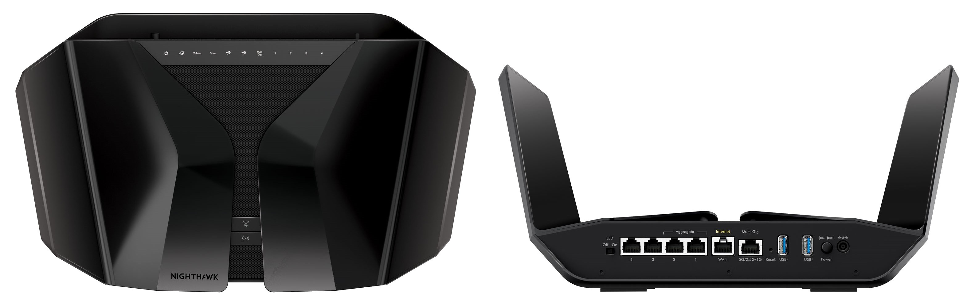 Флагманський маршрутизатор NETGEAR AX12 (RAX120) призначено для інтенсивного використання мережі. Підтримання Wi-Fi 6 AX6000 і 12 потоків MU-MIMO забезпечує сумарну швидкість до 6 Гбіт/с. Пристрій оснащено чотирма гігабітними LAN-портами, портом 5GE для високошвидкісного дротового з’єднання та двома USB 3.0. Така конфігурація буде оптимальною для потокового відео у форматі 4K, онлайн-ігор, відеоконференцій і роботи великої кількості пристроїв у межах однієї мережі. Керування параметрами здійснюється через застосунок Nighthawk, а підтримання NETGEAR Armor додає рівень захисту підключень.