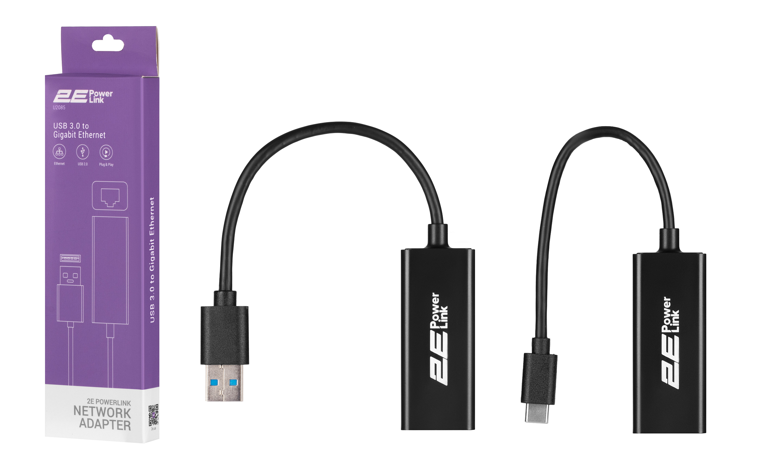 Мережеві адаптери 2E PowerLink U2085 і 2E PowerLink U2085T будуть доречним доповненням до ноутбуків і ультрабуків без Ethernet-порту. Обидві моделі забезпечують швидкість передавання даних 10/100/1 000 Мбіт/с, працюють на чипсеті RTL8153 і підтримують технологію Auto MDIX.