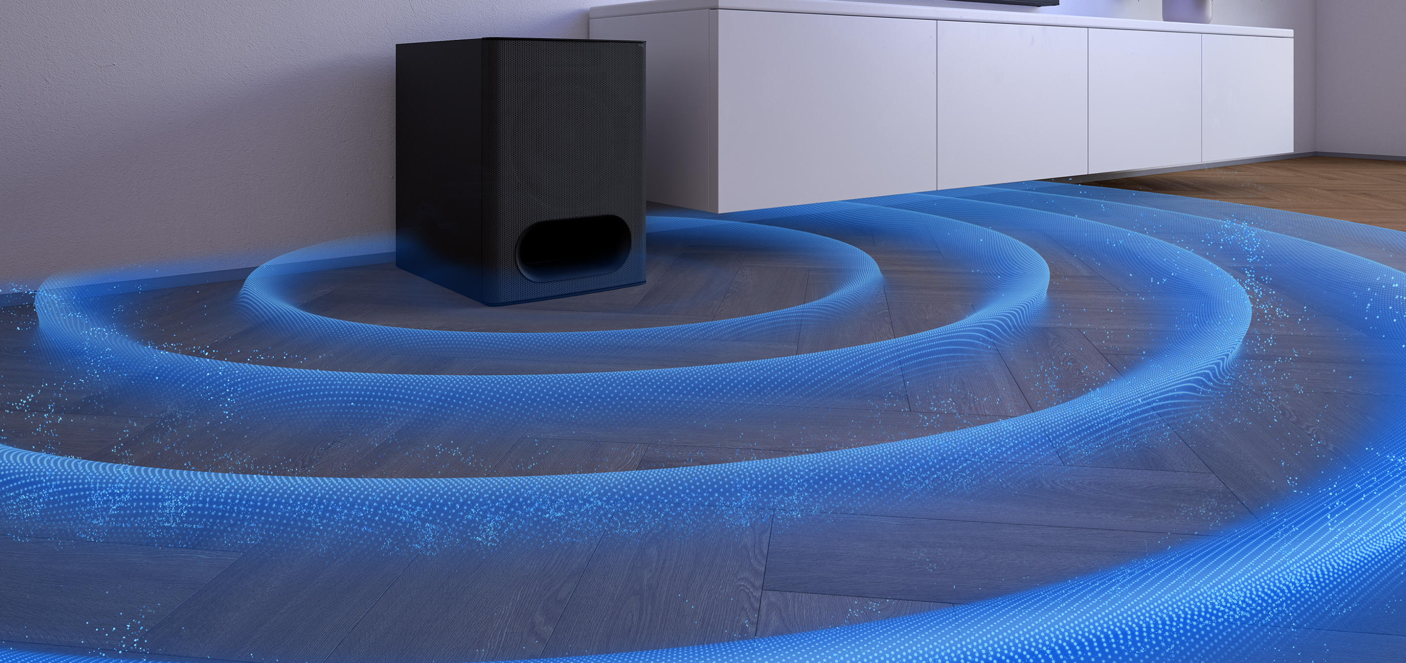 Загальна вихідна потужність системи становить 1 000 Вт, а злагоджена робота аудіопанелі, сабвуфера та задніх динаміків створює щільний звуковий потік із глибокими басами та деталізованими високими частотами. Режим Multi Stereo розподіляє сигнал між усіма каналами, формуючи рівномірне акустичне поле у всій кімнаті.