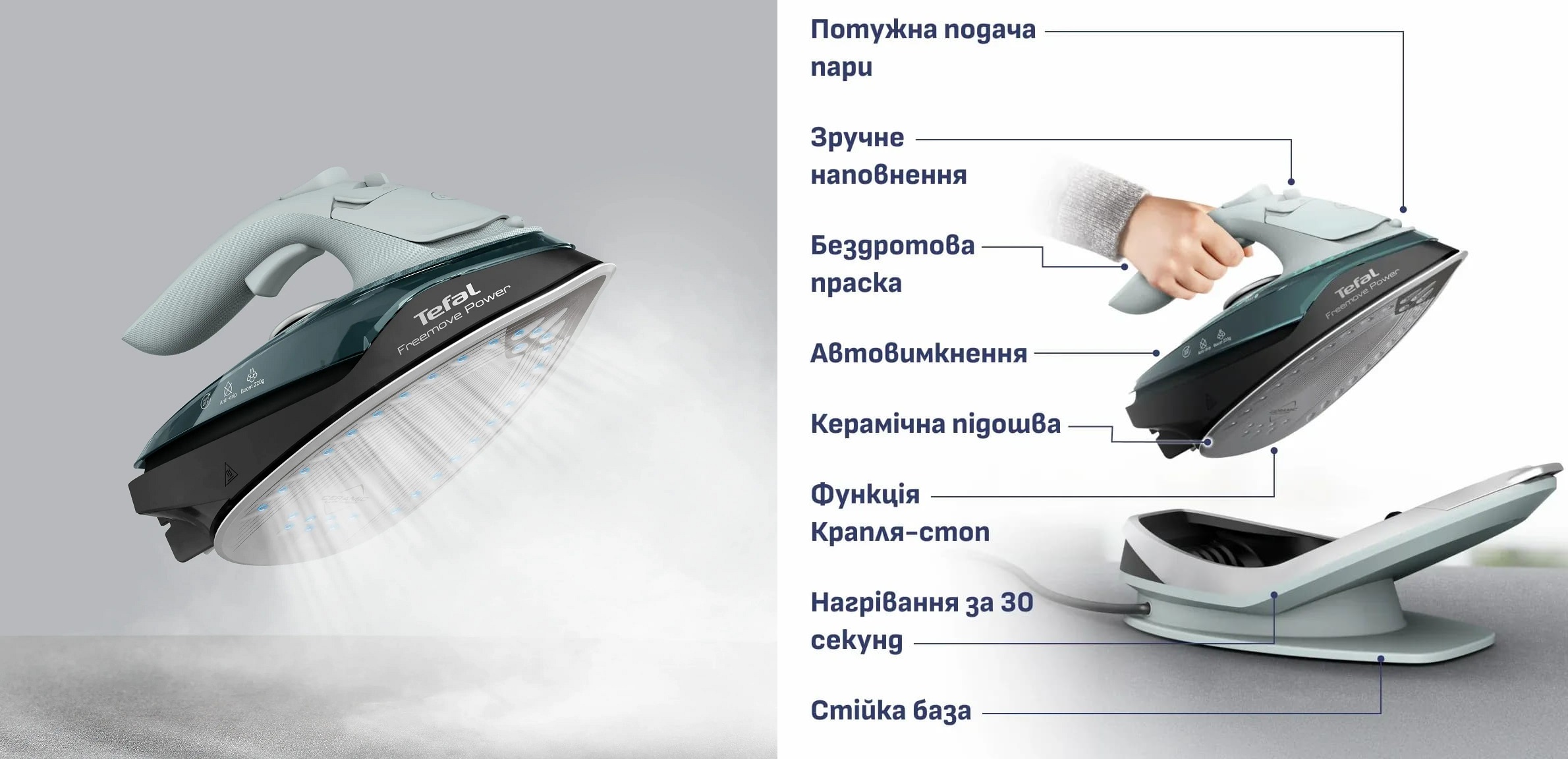 Завдяки бездротовій технології, потужній паровій системі та швидкому нагріванню Tefal Freemove Power FV6670E0 є ефективним інструментом для догляду за різним одягом. У моделі вдало поєднано інновації та простоту використання.