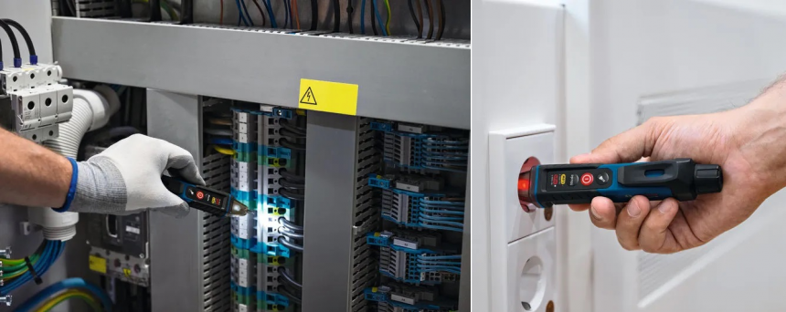 • швидко визначити наявність змінної напруги без прямого контакту;