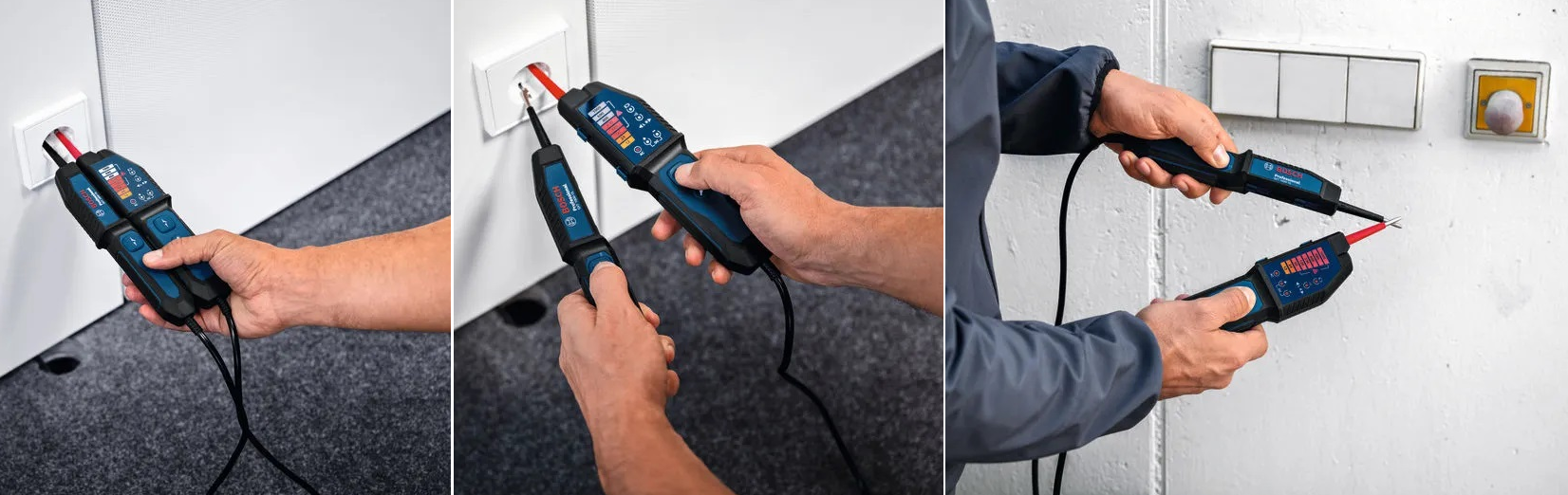 Під час перевірки ліній електропередач і діагностики несправностей для електриків важливими є точність вимірювання й оперативність. Bosch пропонує інструменти для електричного тестування, розроблені з урахуванням високих вимог повсякденної роботи. Цією лінійкою продуктів Bosch доповнено асортимент для забезпечення фахівців всім необхідним вимірювальним інструментом із одного джерела.