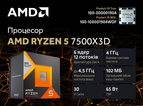 Процесор AMD Ryzen 5 7500X3D поєднує в собі революційну технологію 3D V-Cache та перспективну платформу AM5, пропонуючи геймерам безкомпромісну перевагу над конкурентами в сучасних іграх.