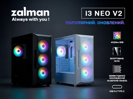 Конструкцією Zalman I3 NEO V2 передбачено багатий набір сучасних складових, що разом формують основу для створення прогресивного ПК. Наявні стандартні сучасні інтерфейси та розніми; продумана архітектура шасі та металева сітка на передній панелі сприяють ефективному обдуванню компонентів і запобігають їх перегріванню. У комплекті – чотири вбудовані 120-мм вентилятори з RGB-підсвічуванням. Бічну панель вироблено із загартованого скла завтовшки 3 мм, яке відшліфовано вздовж периметра та закріплено на петлях. Це зручно, адже забезпечує швидкий доступ до компонентів системи. Також у наборі постачання є всі необхідні деталі для збирання та подальшої експлуатації ПК.