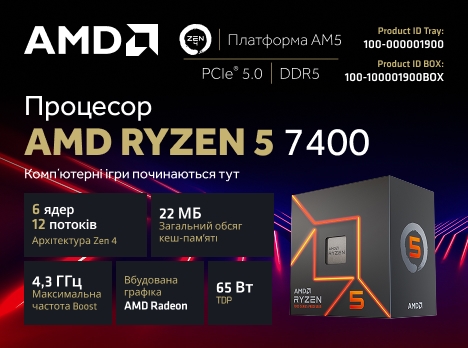 Процесор AMD Ryzen 5 7400 — це оптимальна точка входу у світ сучасного геймінгу, що поєднує енергоефективну архітектуру Zen 4, вбудовану графіку Radeon та підтримку найновіших стандартів пам’яті DDR5.