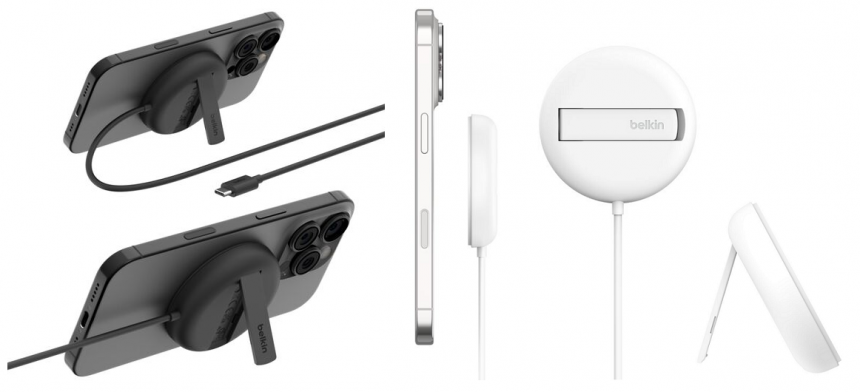 Компактні моделі Belkin UltraCharge Magnetic Kickstand 15 Вт білого та чорного кольорів (коди товарів: WIA011HQWH, WIA011HQBK). Магнітна конструкція з відкидною підставкою актуальна для заряджання смартфона на робочому столі або в дорозі. Підтримання Qi2 із потужністю до 15 Вт стане в пригоді для повсякденного використання без дротів.