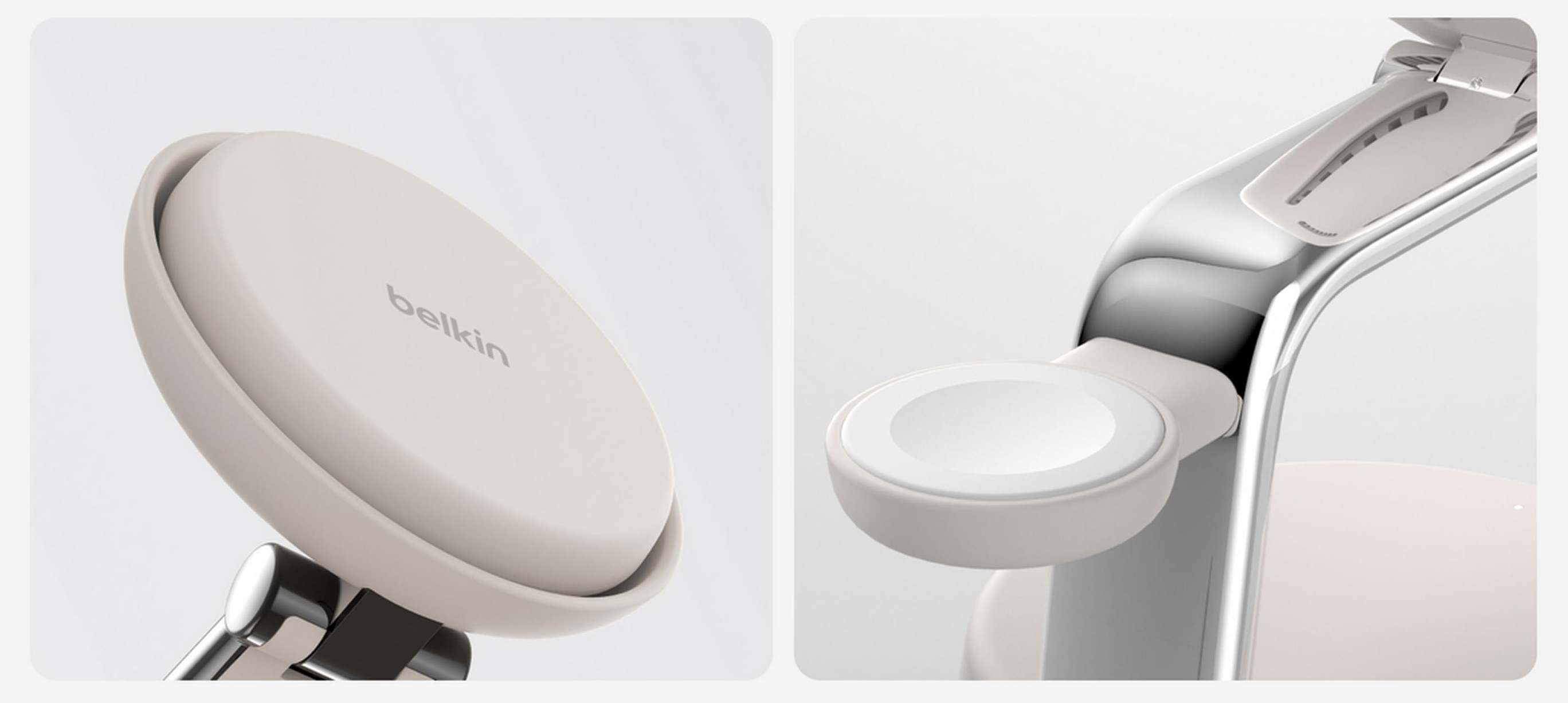 Флагманські док-станції Belkin UltraCharge Pro 3 в 1 Magnetic Charging Dock 25 Вт кольорів Charcoal і Sand (коди товарів: WIZ040KQCH, WIZ040KQSD) розраховані на одночасне заряджання смартфона, годинника та навушників. Охолодження ChillBoost active підтримує сталу потужність Qi2 25 Вт навіть за тривалого навантаження. Комплектація також містить блок живлення на 45 Вт і кабель USB-C – USB-C завдовжки 1,5 м.