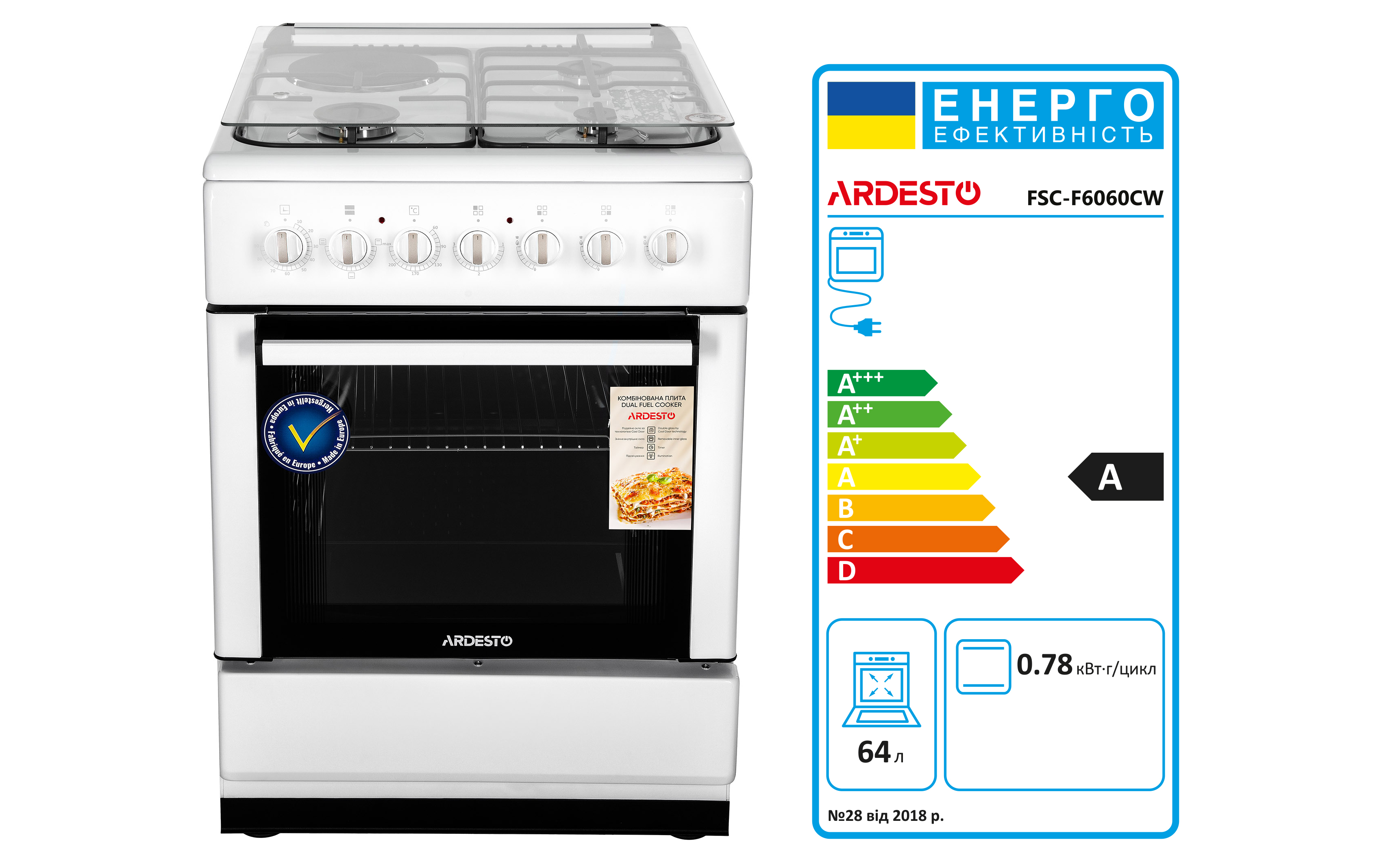 Комбінована плита ARDESTO FSC-F6060CW – універсальне рішення з продуманим функціоналом та економним споживанням електроенергії.