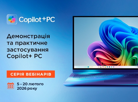 Долучайтеся до серії вебінарів «Демонстрація та практичне застосування Copilot+ PC», що відбудеться з 5 до 20 лютого 2026 року у форматі 7 сесій із можливістю вибрати зручну дату й час.