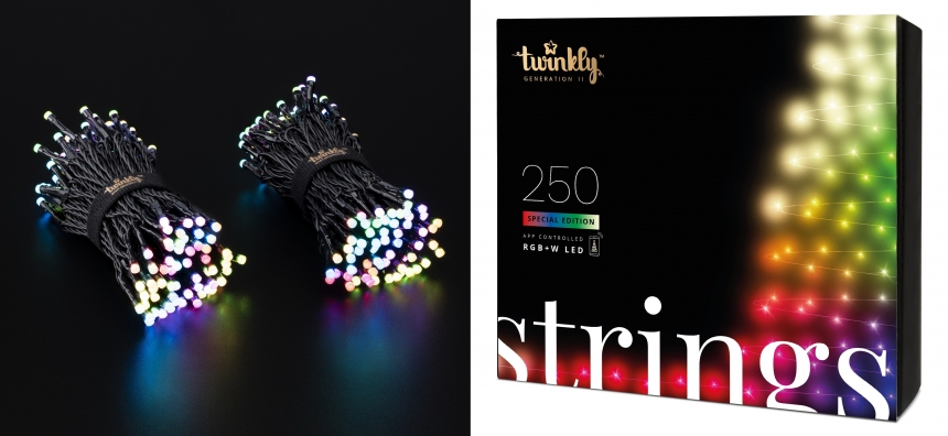 • Twinkly Strings Candle – імітація мерехтіння свічок (TWKC100RGB-G, TWKC200RGB-G, TWKC200RGB-T): моделі на 100 або 200 LED, відстань між лампами 6 см, світлодіодна частина завдовжки 6/6 м × 2 (відповідно), кабелі зелений/прозорий (доступна модель із 200 лампами), клас захисту IP20.