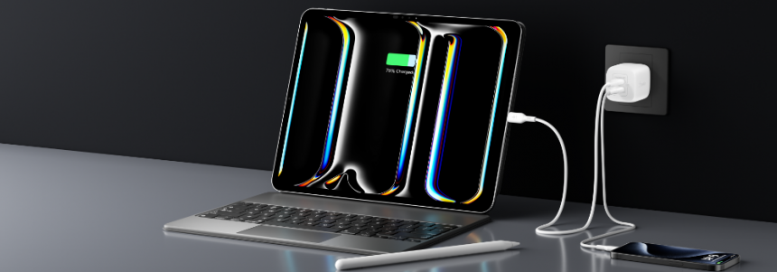 Середній сегмент охоплює пристрої потужністю приблизно 45-60 Вт. Ці адаптери розраховано на заряджання планшетів і ноутбуків. Доступні моделі оснащено двома рознімами USB-C, що дають змогу під’єднувати два пристрої без втрати ефективності. Тож більше не потрібно вибирати «важливіший» пристрій.