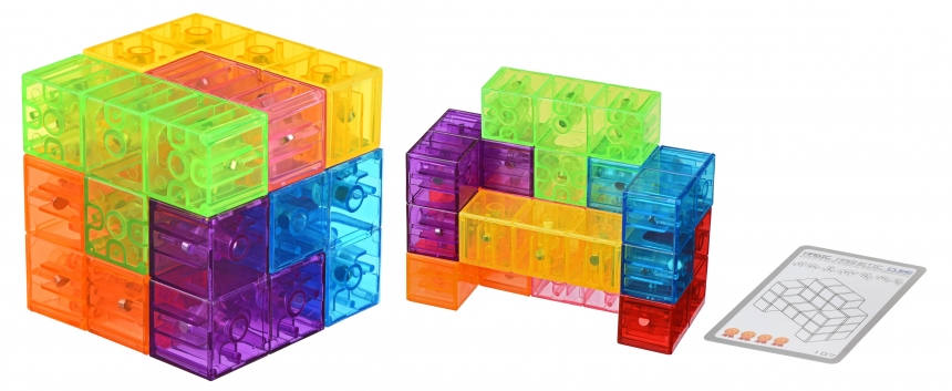 IQ Ball Cube - іграшка-головоломка у вигляді пластикового м’ячика із 11 меншими за розміром різнокольоровими кульками всередині і 12 отворами, 11 з яких позначено кольором, що відповідає меншим кулькам. Завдання головоломки – розташувати кожну маленьку кульку у місці, що відповідає за кольором. За принципом гра нагадує «п’ятнашки», адже є вільний отвір, завдяки якому і можна переміщувати інші кульки всередині м’ячика. IQ Ball Cube зручно тримати і в одній руці, діаметр 8 см.
