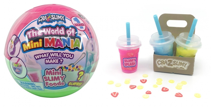 Створіть міні-слаймові продукти з набором Cra-Z-Slimy World of Mini Mania Surprise Ball! Оригінальний ігровий набір-сюрприз, з яким дитина зможе самостійно створити різноманітні мініатюрні страви.Це чудова розвага для дітей, яка допомагає розвивати уяву, тактильні відчуття та дрібну моторику. Кожен набір містить міні інгредієнти та приладдя, з якими можна приготувати справжні кулінарні шедеври, такі як смузі, міні-боули, пластівці з фруктами або молочні коктейлі