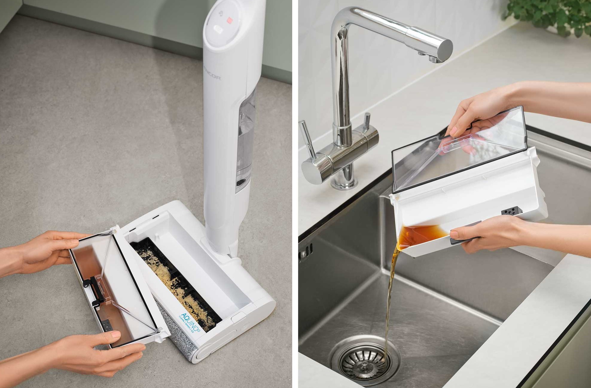Передбачено три окремі ємності – для чистої води, для брудної води та для твердих частинок. Це не лише підвищує ефективність прибирання, а й забезпечує його гігієнічність, оскільки чиста вода не змішується із брудною під час роботи.