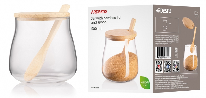 Банки для зберігання ARDESTO Midori різного об’єму знадобляться для круп, макаронів, бобових, снеків, спецій та інших сипких продуктів. Усі вироби виготовлено з екологічного боросилікатного скла, яке не вбирає запахи, зберігає аромат і смак продуктів та забезпечує довготривале використання. Бамбукова кришка створює герметичність, захищаючи вміст від вологи й сторонніх домішок. Прозорі стінки дають змогу швидко контролювати запаси, а спільна стилістика допомагає підтримувати лад на полицях і в шухлядах.