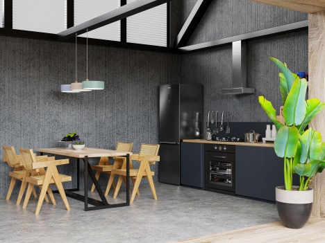 Модель має корисний об’єм 360 л, оснащена сучасною системою охолодження і точним електронним керуванням. Дводверний формат і висота 201,8 см відповідають класу повнорозмірних окремо встановлюваних холодильників. Чорний дизайн – втілення стриманої естетики, що пасує до інтер’єру з темними або контрастними акцентами.