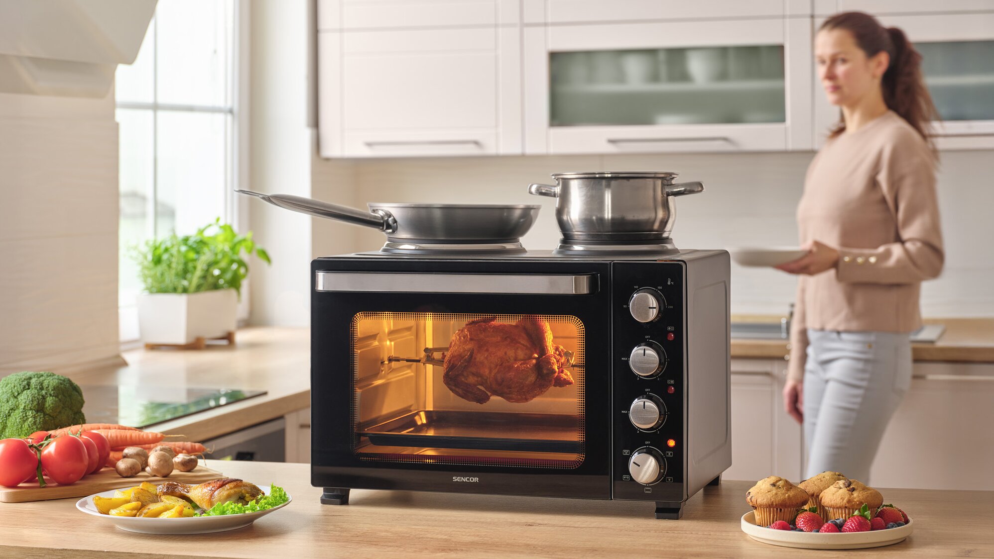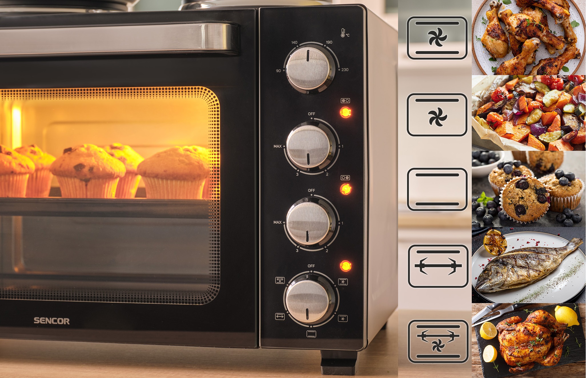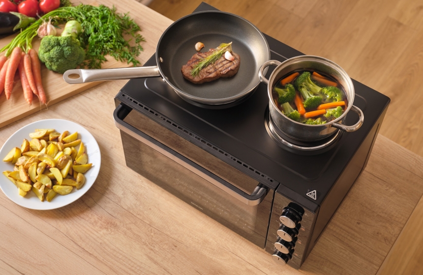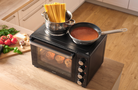 SENCOR SEO3500BK поєднує функціональність, потужність і компактність, формуючи практичне рішення для різноманітних кулінарних сценаріїв. Завдяки конструкції, що інтегрує духовку та варильну поверхню в одному пристрої, модель розширює кулінарні можливості без необхідності встановлювати кілька окремих пристроїв.