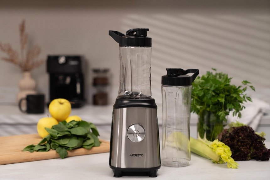 Блендер для смузі ARDESTO SBG-F350: компактний помічник для прихильників здорового способу життя. У комплекті дві дорожні пляшки (600 та 300 мл), що дають можливість взяти напій із собою одразу після збивання. Окрема ємність для помелу кави або горіхів розширює сценарії використання.