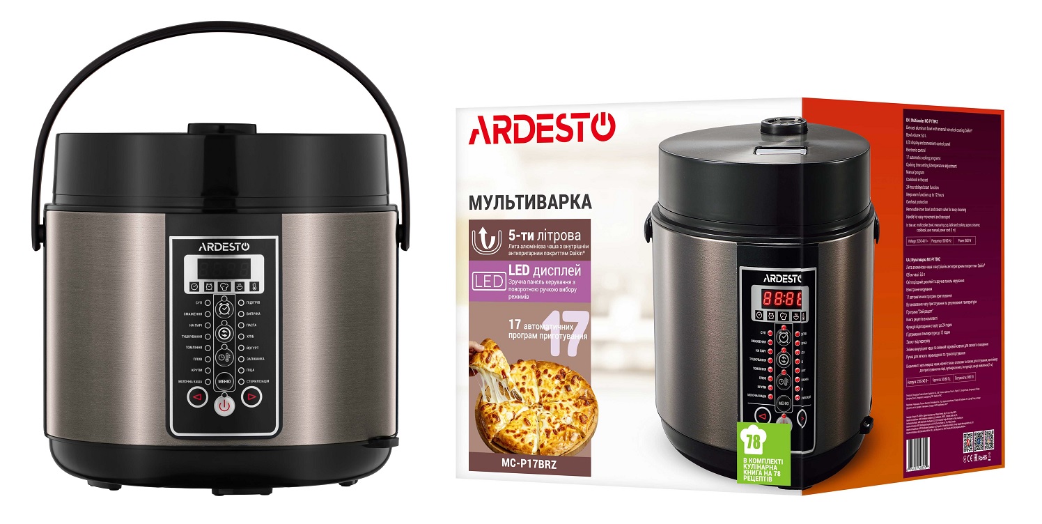 Полегшити щоденний клопіт із приготування й водночас доповнити звичне меню смачними стравами допоможе мультиварка ARDESTO MC-P17BRZ потужністю 860 Вт. Модель має 17 вбудованих програм, тож задовольнити смакові вподобання всіх членів родини легко як ніколи.