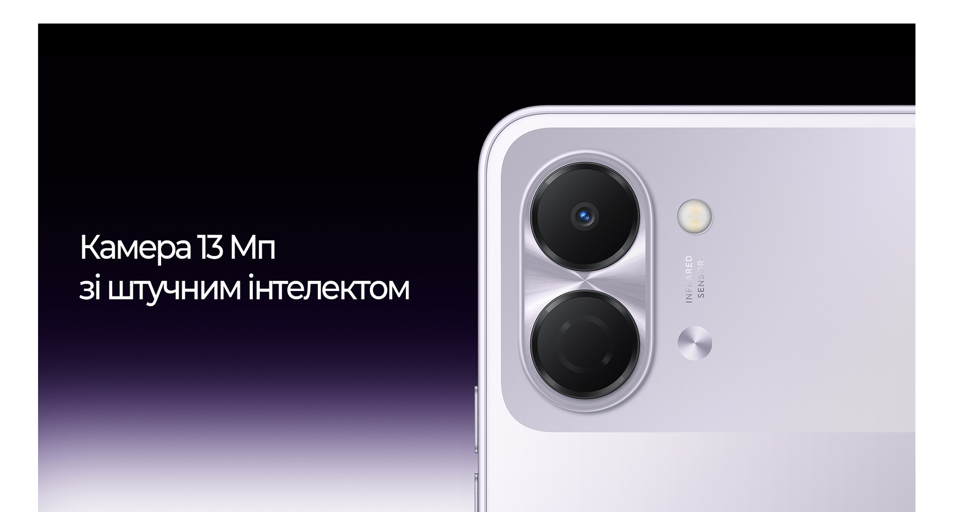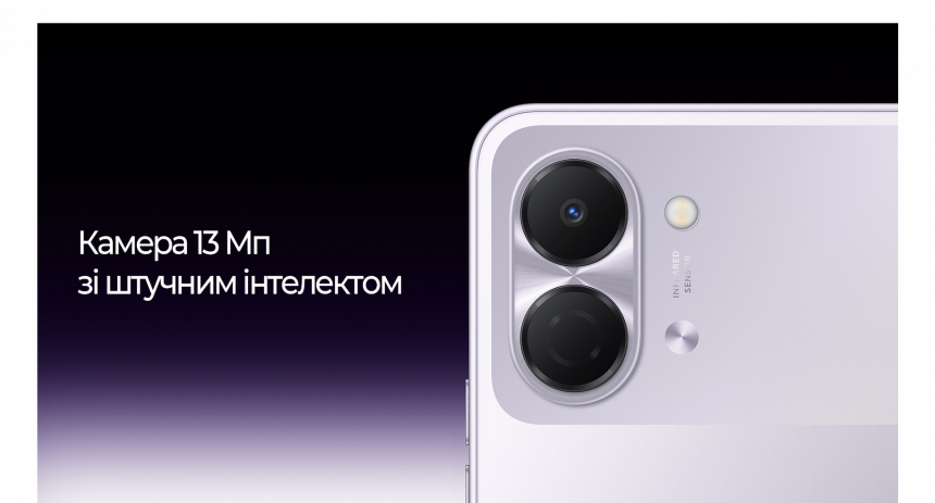 Основна камера на 13 МП використовує алгоритми штучного інтелекту для автоматичної обробки знімків. Система коригує деталізацію, кольори та освітлення, зокрема в умовах слабкого освітлення.