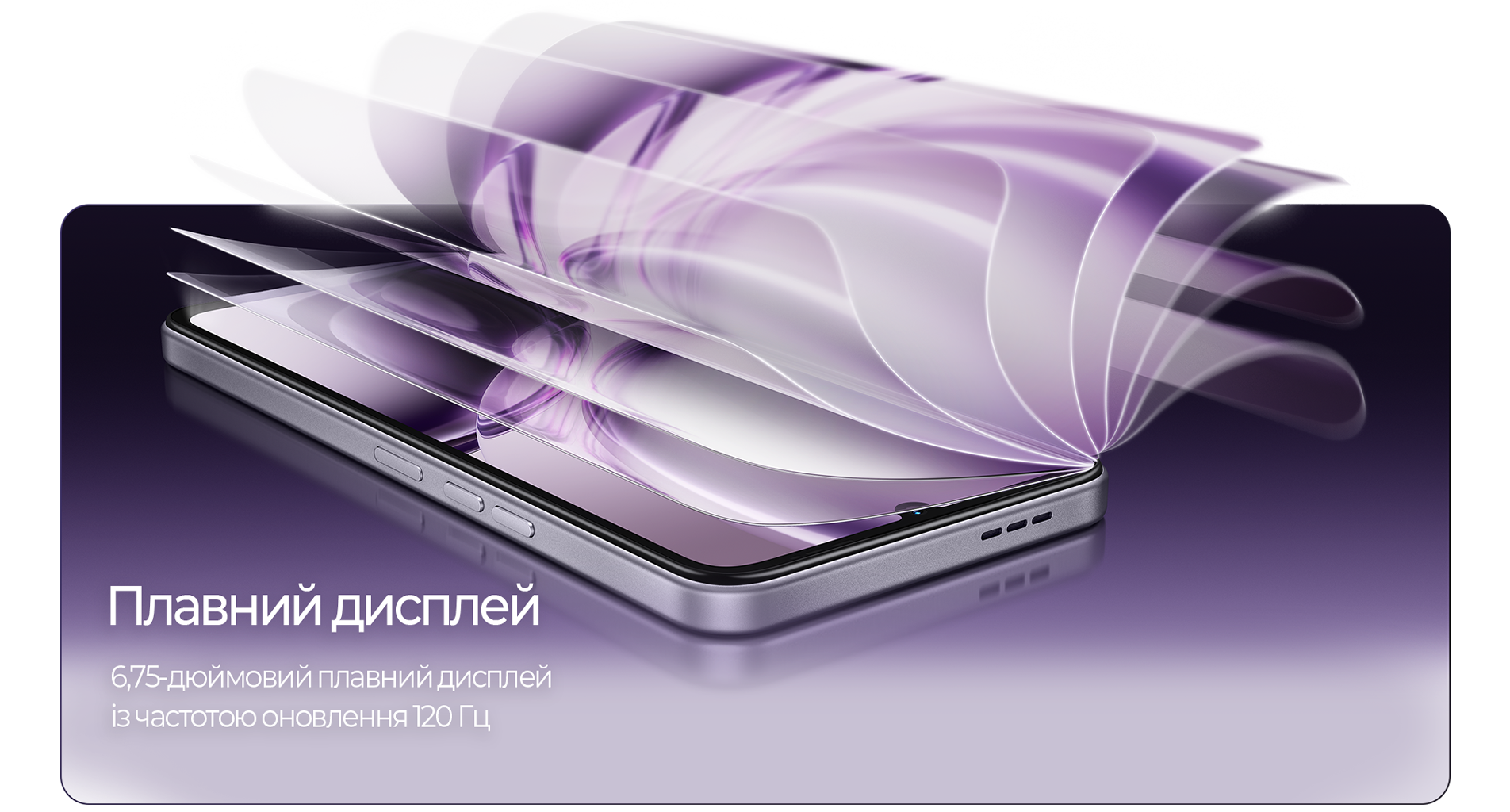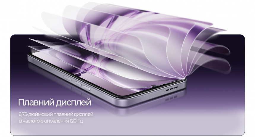 Смартфон оснащено великим 6,75-дюймовим дисплеєм з адаптивною частотою оновлення 120 Гц. Такий розмір полегшує роботу з текстами, таблицями та стрічками соціальних мереж. Динамічне регулювання частоти дає можливість оптимізувати роботу системи залежно від контенту та зменшити навантаження на акумулятор.