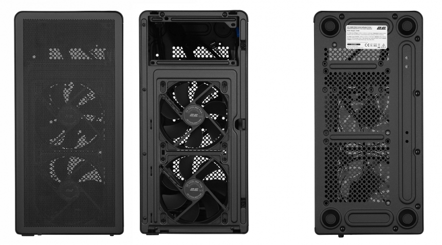 Верхня, нижня і бічні панелі мають перфорацію або перфоровані вставки, забезпечуючи в такий спосіб ефективну циркуляцію повітря всередині. Отвори оптимального діаметра сприяють охолодженню компонентів і водночас унеможливлюють потрапляння пилу та дрібних часточок ззовні. Корпус виготовлено зі сталі 0,8 мм, що гарантує жорсткість конструкції та довговічність за щоденної експлуатації.