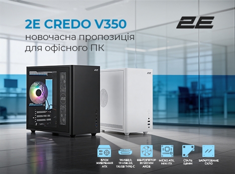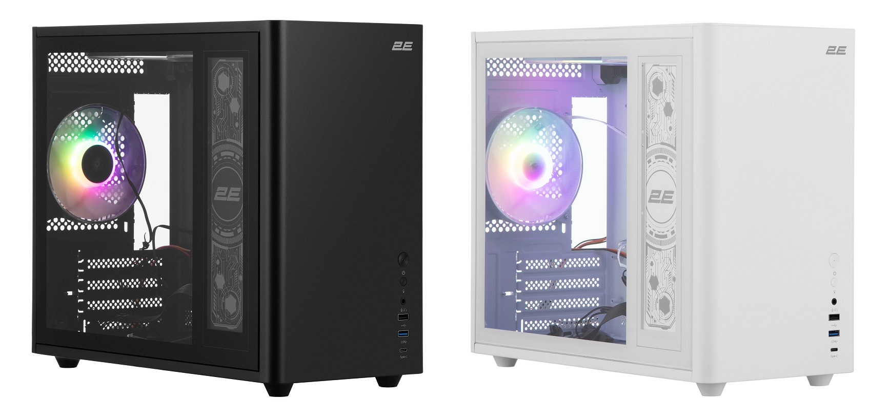 Корпуси 2E Credo V350 чорного та білого кольорів поєднують лаконічний дизайн і функціональну конструкцію, орієнтовану на зручне самостійне або промислове складання.