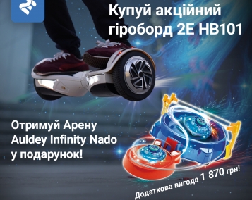 Від сьогодні діє спеціальна ціна на гіроборд 2Е HB101. Це єдиний гіроборд, на якому можна не лише їздити, а й стрибати! Лише на один колір і лише на обмежену кількість товару!