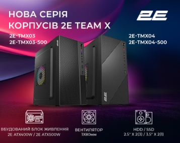 Універсальний асортимент 2Е – це сучасна актуальна пропозиція для робочого, офісного, домашнього ПК та ігрової станції. Моделі корпусів 2Е серії TeamX 2E-TMX03 та 2E-TMX04 для створення бюджетного компактного ПК, розраховано на материнські...