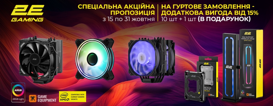 Охолодження для процесора 2E GAMING AIR COOL AC120D4TC-ARGB з адресним RGB підсвічуванням розподіленим по внутрішній частині вентилятора і класичною баштовою конструкцією радіатора. Компактний кулер із тихим 120 мм вентилятором (на вдув) на гідравлічному підшипнику.