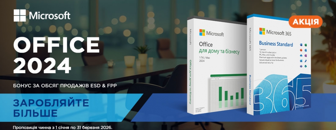 Упродовж дії пропозиції, з 1 січня до 31 березня 2026 року, і за кожен «офіс» збільшуйте свій прибуток у вигляді бонусу до 7 у.о. (за курсом у грн). Щоб отримати бонуси, придбайте від 5 одиниць таких програмних продуктів: