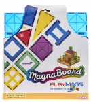 Магнітний конструктор від бренду MagPlayer – це незамінний помічник для розвитку дітлахів від 3-х років. Яскраві напівпрозорі деталі, що вироблені із якісного пластику, містять у собі маленькі магніти. Таким чином елементи набору дуже легко складати, а кріплення при цьому досить надійне. У комплектацію конструктора входять: 1 колісна база, 2 площини, 18 трикутників трьох видів, 4 прямокутники, 25 квадратів з отворами і без, а також 6 букв-вставок для фігур з отворами. Дитина буде розвивати своє логічне мислення, моторику і креативність, будуючи різноманітні конструкції: транспорт, будинки, високі вежі, написи тощо.